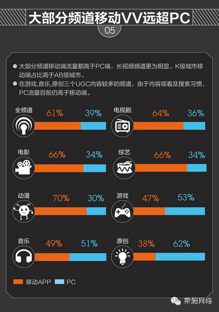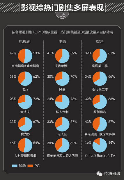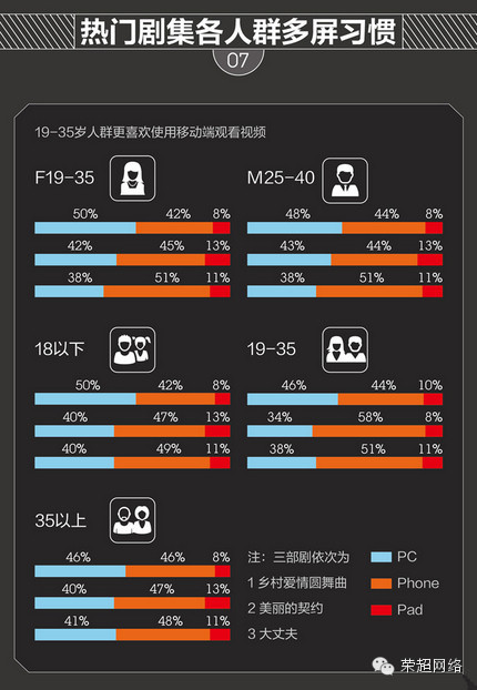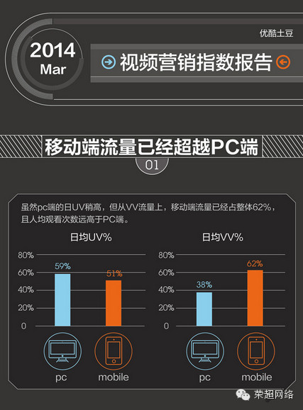 2014年3月《视频营销指数报告》发布,报告显示:视频观看上,移动端流量已经超过PC端;19-35岁人群更喜欢用移动端观看视频;不同城市、不同剧集,用户多屏观看行为有不同表现。
